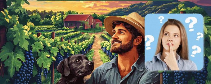 Toliau matysite vynuogyno, kuriame vyras skina vynuoges, paveikslėlį. Šalia yra jo ištikimas šuo, kuris niekada nepalieka šeimininko vieno. Atrodytų, kas čia gali būti neįprasto?
