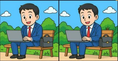 Taigi, pasiruošę kitam iššūkiui? Pažvelkite į dvi nuotraukas, kuriose pavaizduotas parke nešiojamuoju kompiuteriu dirbantis vyras. Iš pirmo žvilgsnio paveikslėliai gali atrodyti vienodi, tačiau juose paslėpti 3 skirtumai, o tavo užduotis – kuo greičiau juos surasti. Ar sugebėsite juos visus surasti vos per 75 sekundes? Išbandykite šį galvosūkį ir pasitikrinkite, koks aštrus jūsų regėjimas!