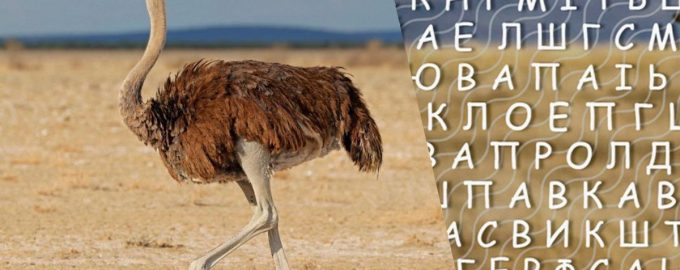 Žodis „strutis” paslėptas tarp chaotiškai išdėstytų raidžių. Per 10 sekundžių turite surasti žodį „strutis” / Moje koliažas, depositphotos.